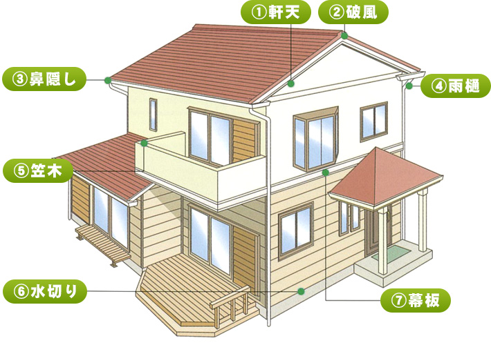 外壁以外にも、雨樋・破風板・雨戸・軒天など、家の外まわりにはさまざまな部材があり、それらをまとめて「付帯部」と呼びます!