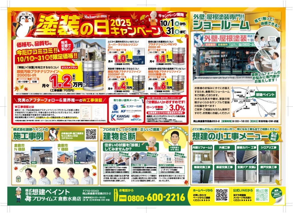 塗装の事なら倉敷市・岡山市 外壁塗装、屋根塗装専門店 想建ペイントにお任せ下さい!