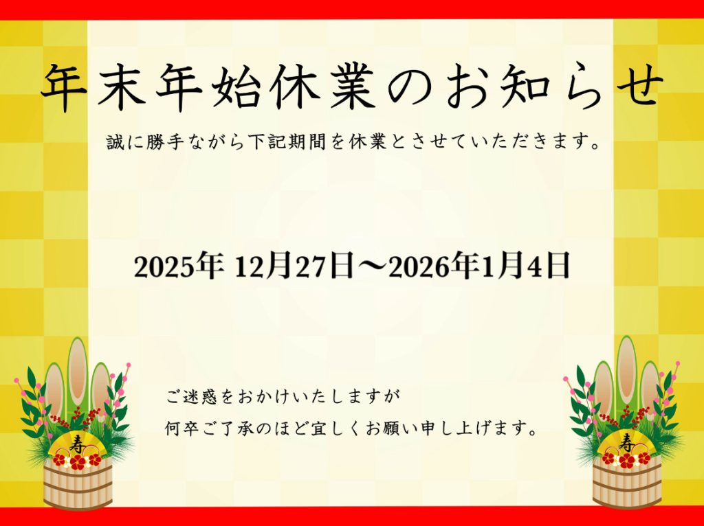 休業期間中にいただいたお問い合わせ・ご連絡につきましては、2026年1月5日(月)より順次対応させていただきます。