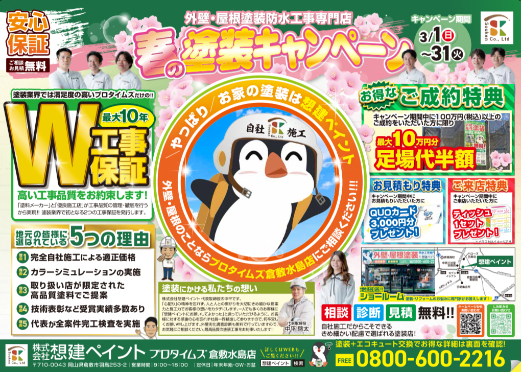 倉敷市の外壁塗装・屋根塗装専門店 プロタイムズ倉敷水島店(株式会社想建)です。